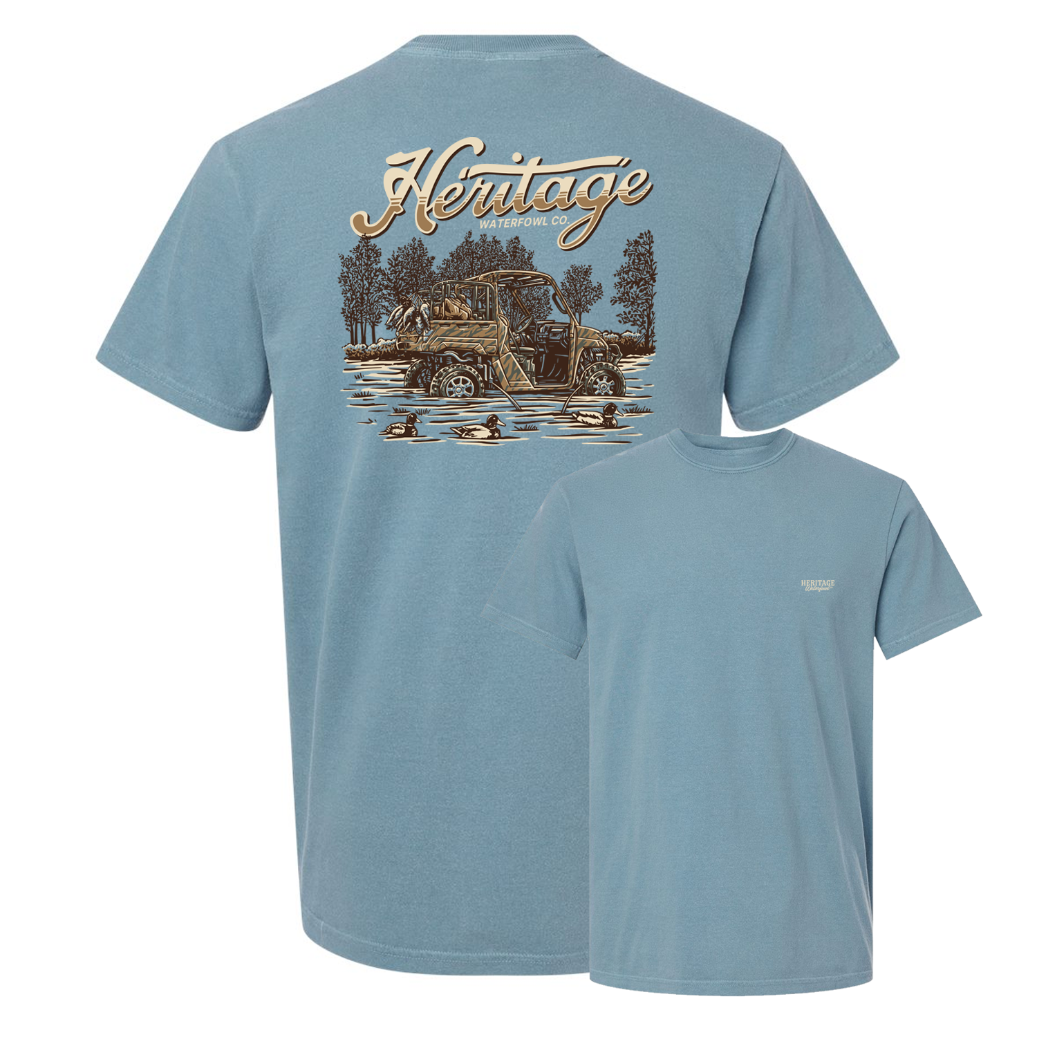 Built for those early mornings in the flooded timber, the Marsh Runner Tee captures the essence of the hunt — an ATV loaded down, decoys in tow, and still water waiting. Printed on a premium Comfort Colors C1717, it’s soft, durable, and made to last through every season.
